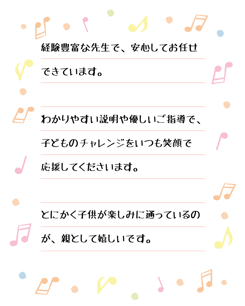 という信頼と感謝を胸に、安心して楽しく学べる教室でお待ちしています。
